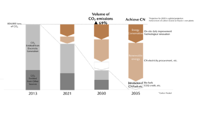 Comentando este anúncio, Takeshi Mukai, Diretor e Administrador-Delegado Sénior (Supervisão da Qualidade, Compras, Produção, Logística Empresarial e Neutralidade de Carbono; Assistente do Administrador que supervisiona a Inovação de Custos), afirmou: "A Mazda irá avançar com iniciativas de neutralidade carbónica em linha com os seus planos de contribuir para a redução das emissões de CO2 e para a prevenção do aquecimento global em todos os seus processos, incluindo a produção, transporte, utilização e reciclagem/eliminação, pois acreditamos que tais esforços são uma responsabilidade fundamental dos fabricantes de automóveis. Através destes três pilares, a Mazda tem como objetivo atingir a neutralidade carbónica em todas as suas fábricas a nível global até 2035 e tentará atingir a neutralidade carbónica em toda a cadeia de fornecimento até 2050, contribuindo para uma coexistência duradoura com o nosso planeta."