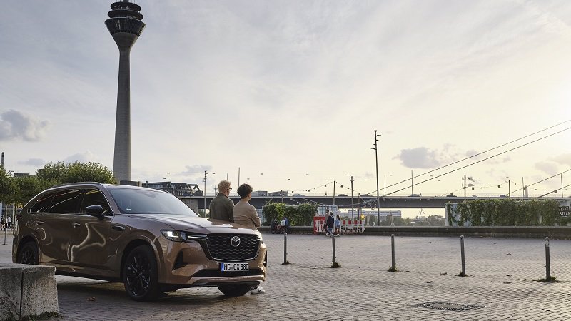 [1] Mazda CX-80 e-Skyactiv PHEV - Consumo de combustível (valor ponderado, combinado): 1,6 l/100 km; Consumo de energia (valores ponderados, combinados): 23,8-23,9 kWh/100 km; Emissões de CO2 (ponderadas, combinadas): 35-36 g/km; Classe de CO2: B; Consumo de combustível (valor ponderado, combinado) com a bateria descarregada: 8,1 l/100 km; Classe de CO2 com a bateria descarregada: G.)